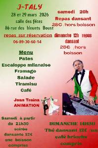 Joignez-vous a nous pour une soirée conviviale et sympathique autour d'un bon repas à la salle des fêtes de Boust